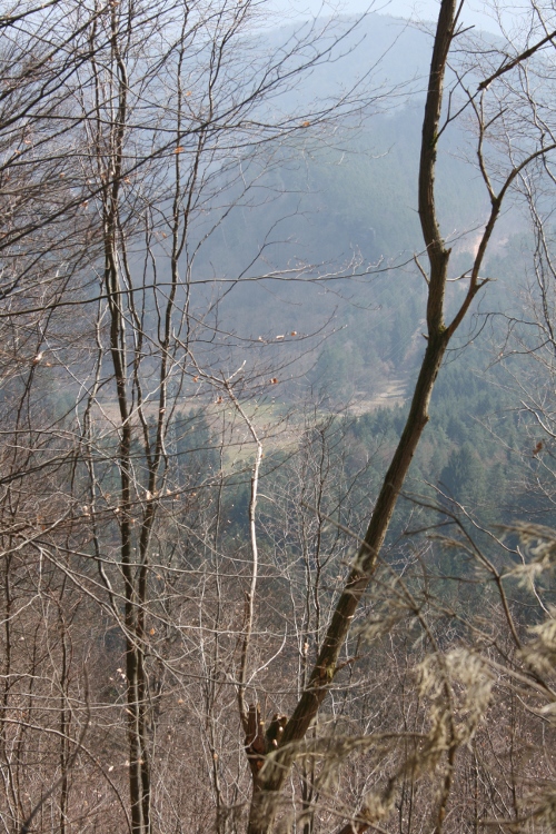 zum Friedensdenkmal im Wald hoch.